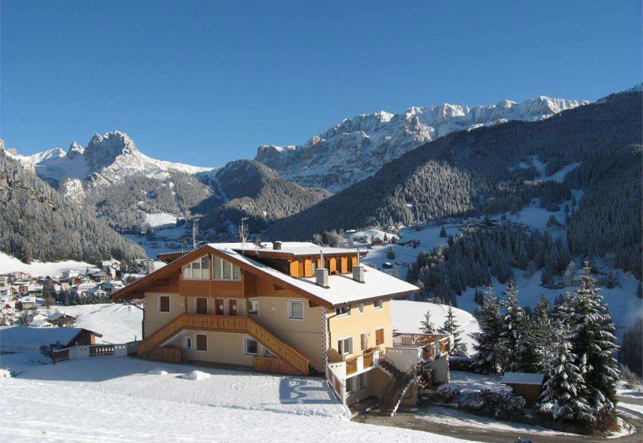 Das Apartment-Haus Etruska liegt auf der Sonnenseite, in sehr ruhiger und sonniger Lage mit herrlichem Rundblick auf den Langkofel und die Sellagruppe.