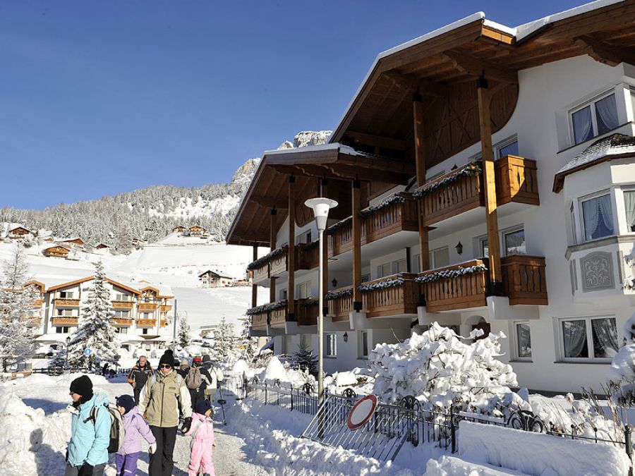 In ruhiger und sonniger Lage gelegen, unmittelbar an einer Skipiste mit Übungshang und direktem Anschluss an die Sellaronda.