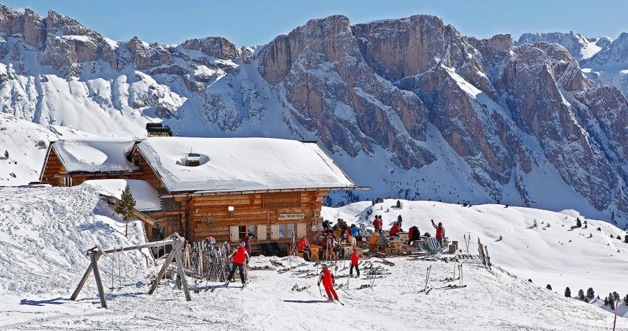 Die Trojer Hütte auf der Seceda Alm liegt im Naturpark Puez Geisler auf 2250 Meter Höhe und hat einen herrlichen Ausblick auf die rundherumliegenden Dolomiten.