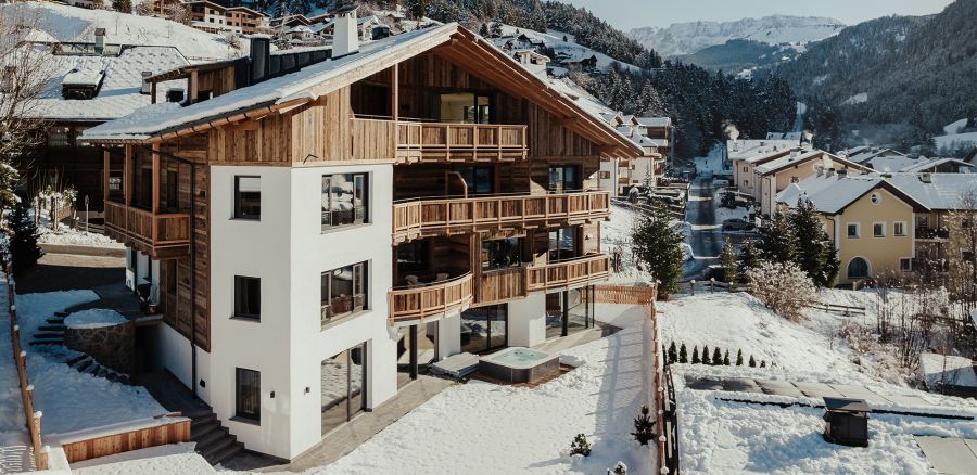 Zentral gelegene Chalets mit privatem Wellnessbereich, Outdoor-Whirlpool und Garten. Genießen Sie Eleganz, Privatsphäre und unseren Premium-Service in den Dolomiten.