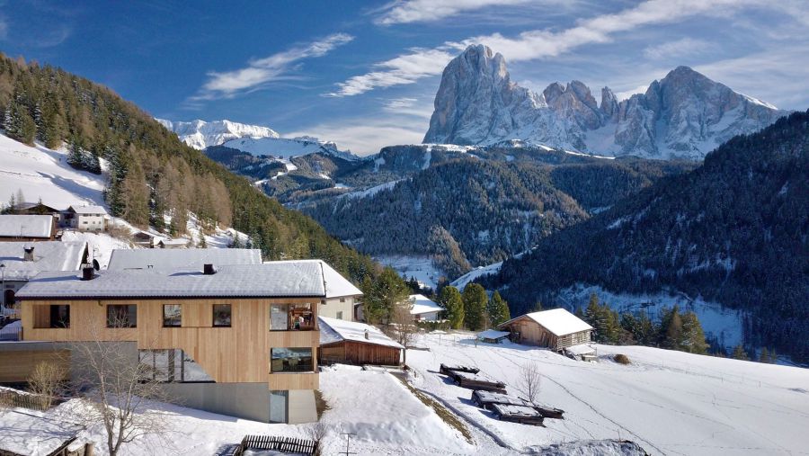 In idyllischer Panoramalage mit traumhaftem Blick auf den Langkofel genießen Sie einen erholsamen Urlaub voller Ruhe und Entspannung inmitten der Natur.