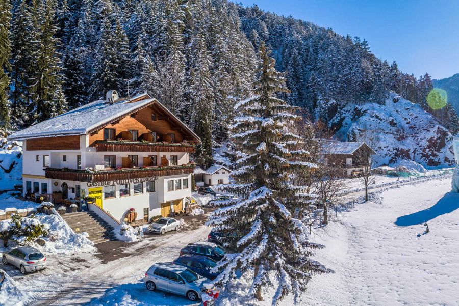 befindet sich im Ortseingang von St. Ulrich im Grödental. 3 Km vor dem Ortszentrum in sonniger und ruhiger Lage mit großem Parkplatz. Gut erreichbar, 200 Meter von der Hauptstrasse aus sichtbar.