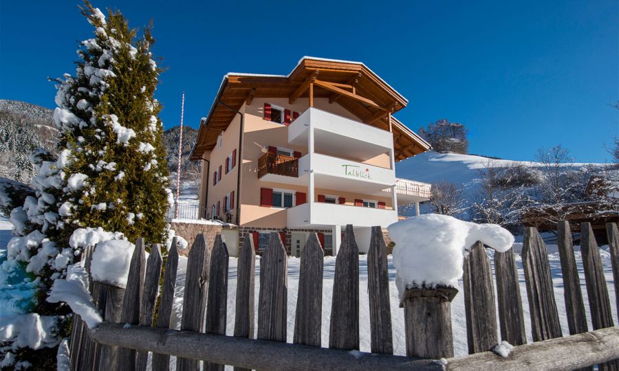 In einmaliger, ruhiger Lage, sonnig und von blühenden Bergwiesen umgeben, liegt am Anfang des Grödnertals unsere Pension „Talblick“, 4 km vom Ortszentrum St. Ulrich entfernt.