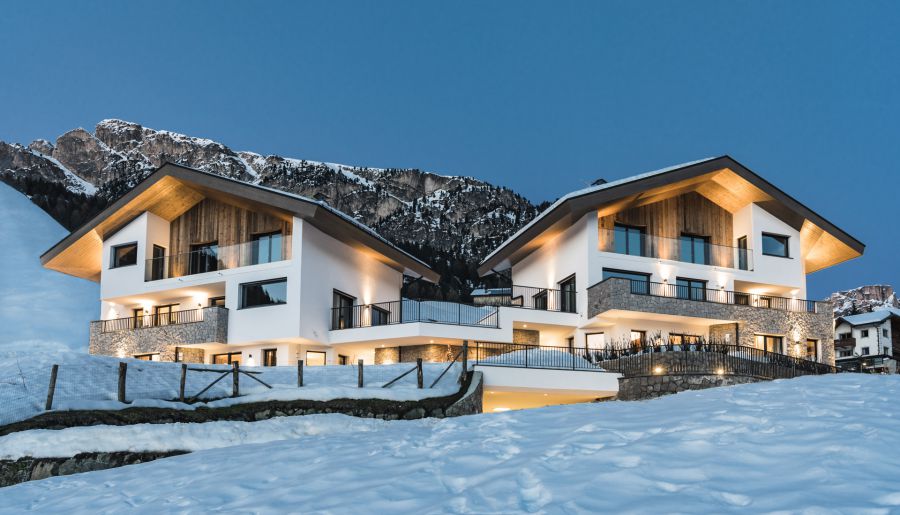 Spend your hiking and skiing holiday in the Dolomites in the exclusive holiday apartments of our chalets with a view of the Sassolungo and the Sella massif