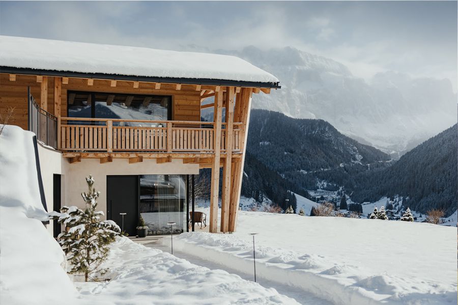 The elegant chalet is your very private retreat in the holiday region of Val Gardena, set amidst the unique Dolomites. The architecture that integrates harmoniously into the landscape, the unrestricted privacy that can be enjoyed here, and the wide, frameless windows that flood the interior space with light while, at the same time, opening up the view to the mountain world - all make this chalet a unique hideaway that lives up to its name: Lum d'Or, Golden Light.