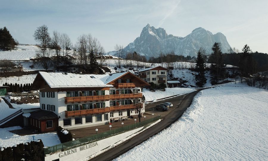 L'Hotel Garnì Melissa, grazie alla sua posizione tranquilla e idilliaca immersa nel verde di prati e campi, è un luogo dove sentirsi bene e rilassarsi. Il centro del paese di Castelrotto con i suoi negozi tradizionali, accoglienti caffè e ottimi ristoranti dista pochi minuti a piedi. L'hotel è il punto di partenza ideale per lunghe passeggiate ed escursioni nel pittoresco paesaggio naturale dello Sciliar. Questa località di villeggiatura ai piedi dell'Alpe di Siusi offre anche agli appassionati di mountain bike numerosi percorsi e tour MTB.