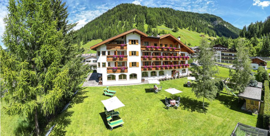 in estate, trovare un piacevole relax sul nostro grande prato con sedie a sdraio, dopo aver fatto un'escursione nelle Dolomiti, e godersi gli ultimi raggi del sole di una bella giornata. In inverno, dopo una lunga sciata, trovare un posto caldo vicino al caminetto della "Jagdstube" e trascorrere una piacevole serata.